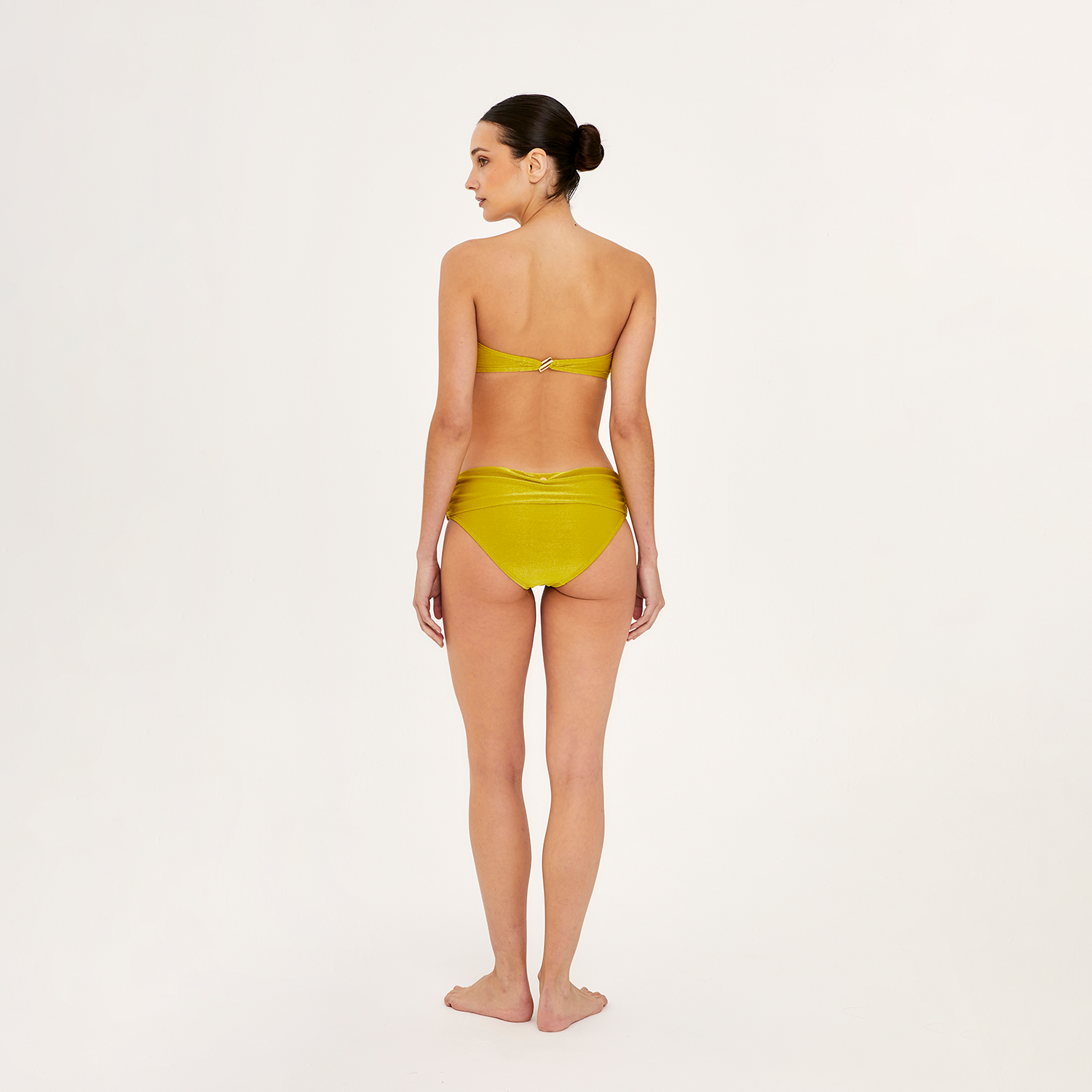 Conservative-cut bikini bottom with full coverage, Features a soft waistband. Crafted from italian subtle shimmer fabric, made in Peru.