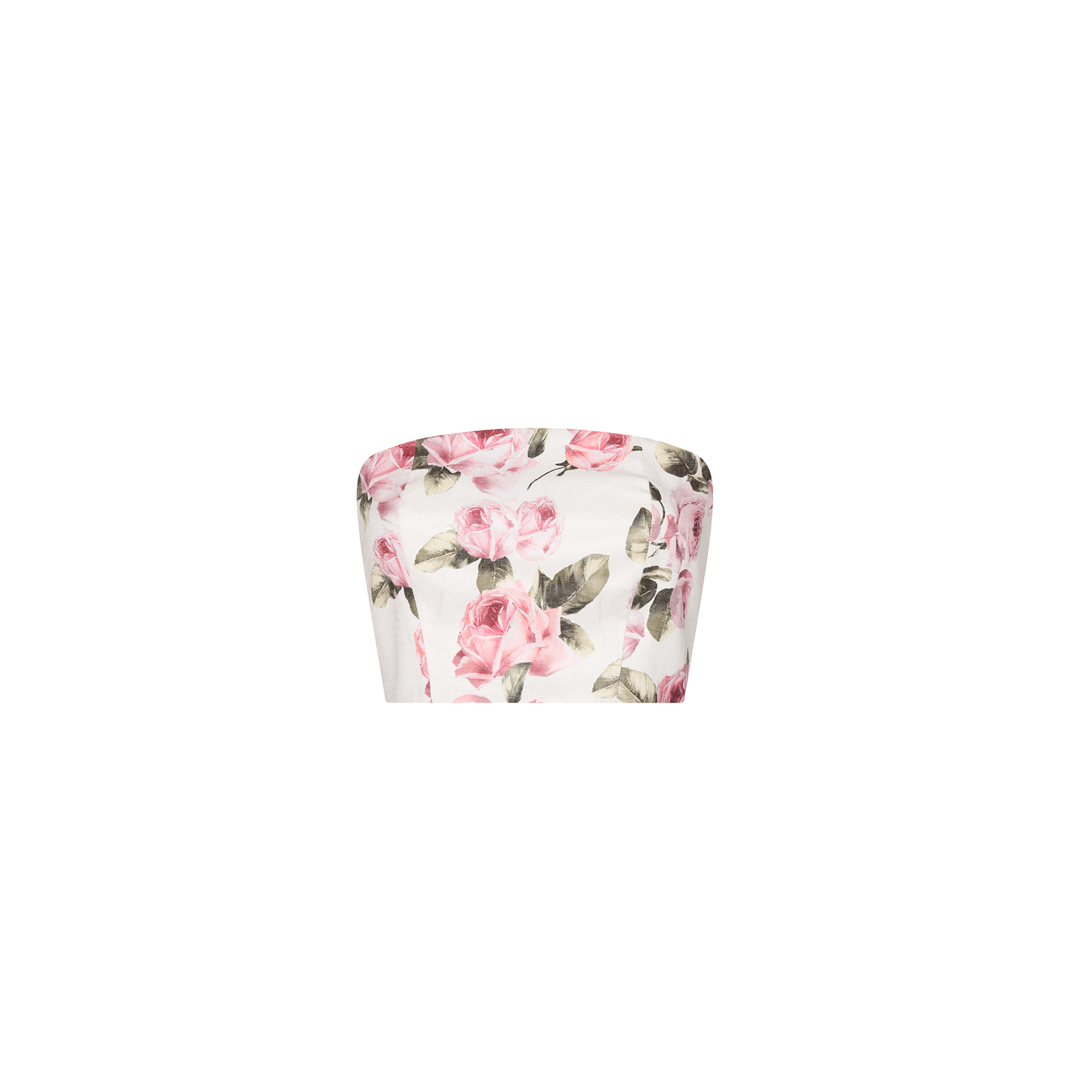 Strapless bustier-style top with a unique oval-cut design and adjustable hook closure at the back. Crafted from Italian fabric with an original Aguaclara print, made in Peru.Details:100% Linen