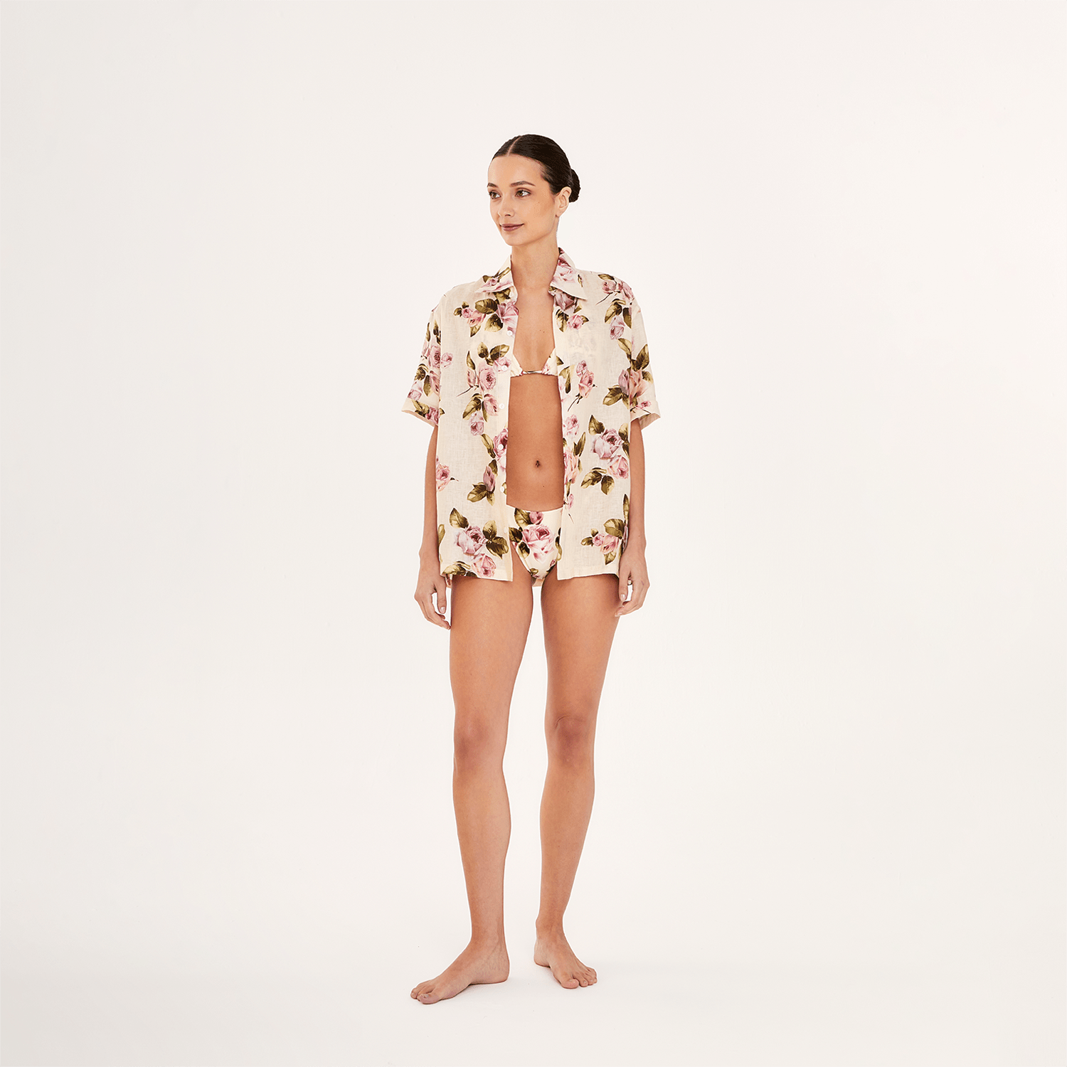 Button-up shirt featuring short-sleeves. Crafted from Italian fabric with an original Aguaclara print, made in Peru.Details:100% Linen