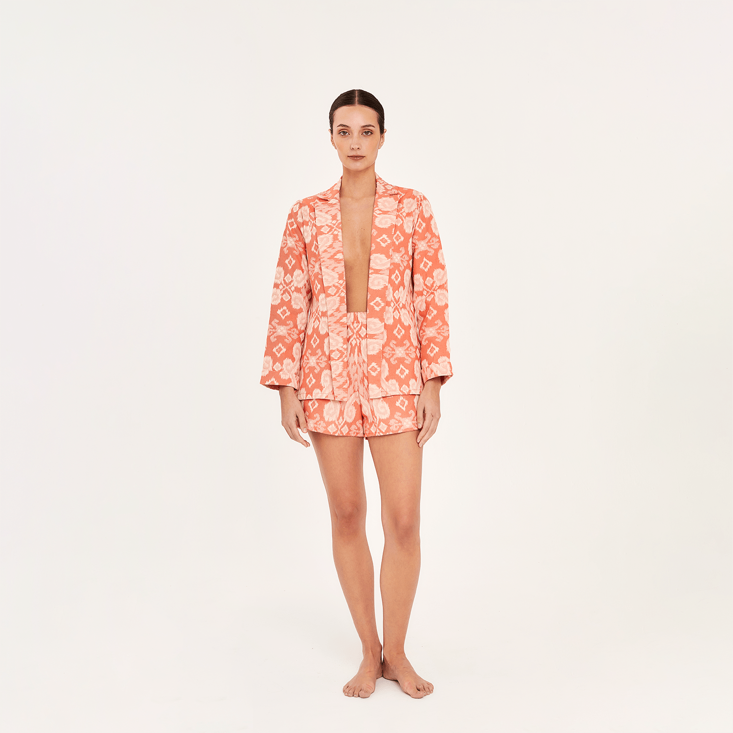 High waisted short featuring a waistband and elastic at the back. Crafted from Italian fabric with an exclusive Aguaclara print, made in Peru.Details:100% Cotton Jacquard