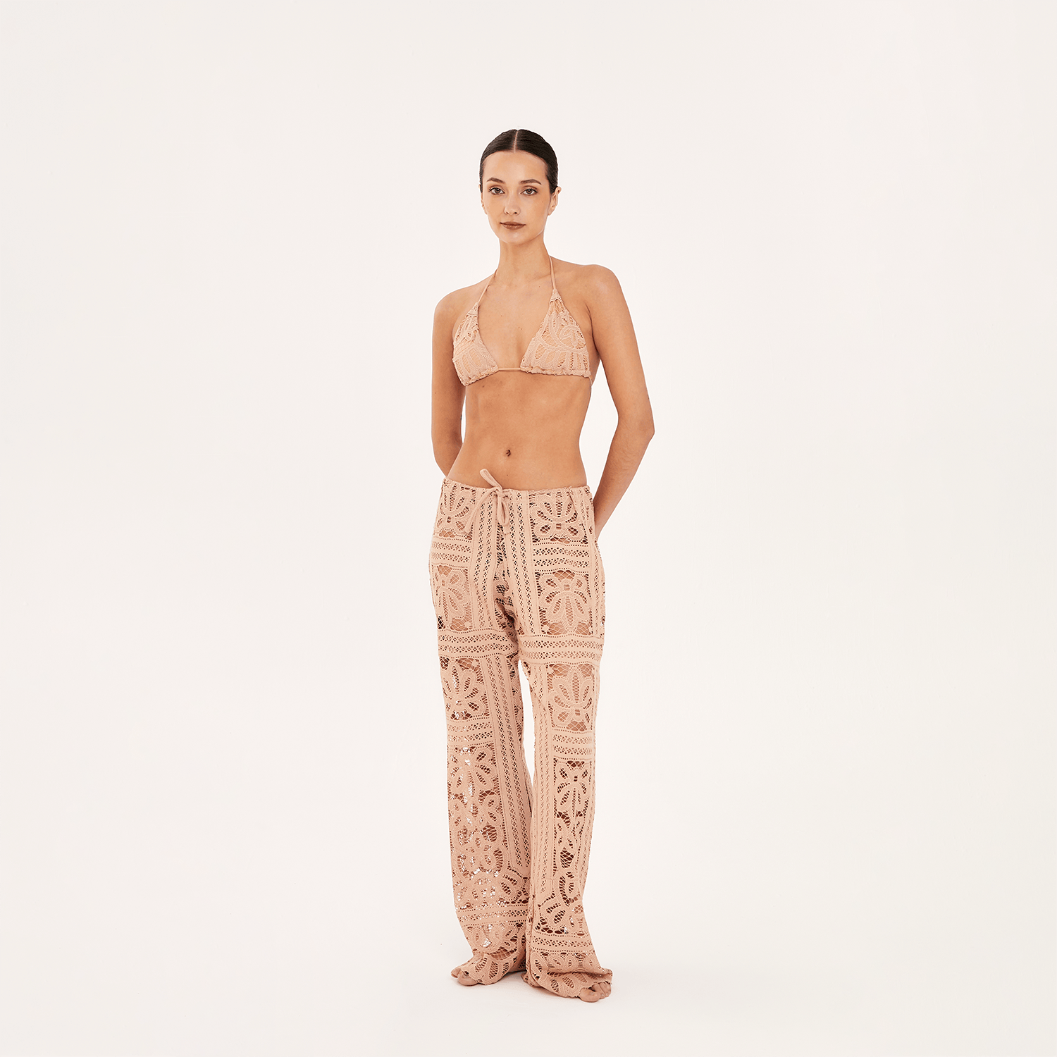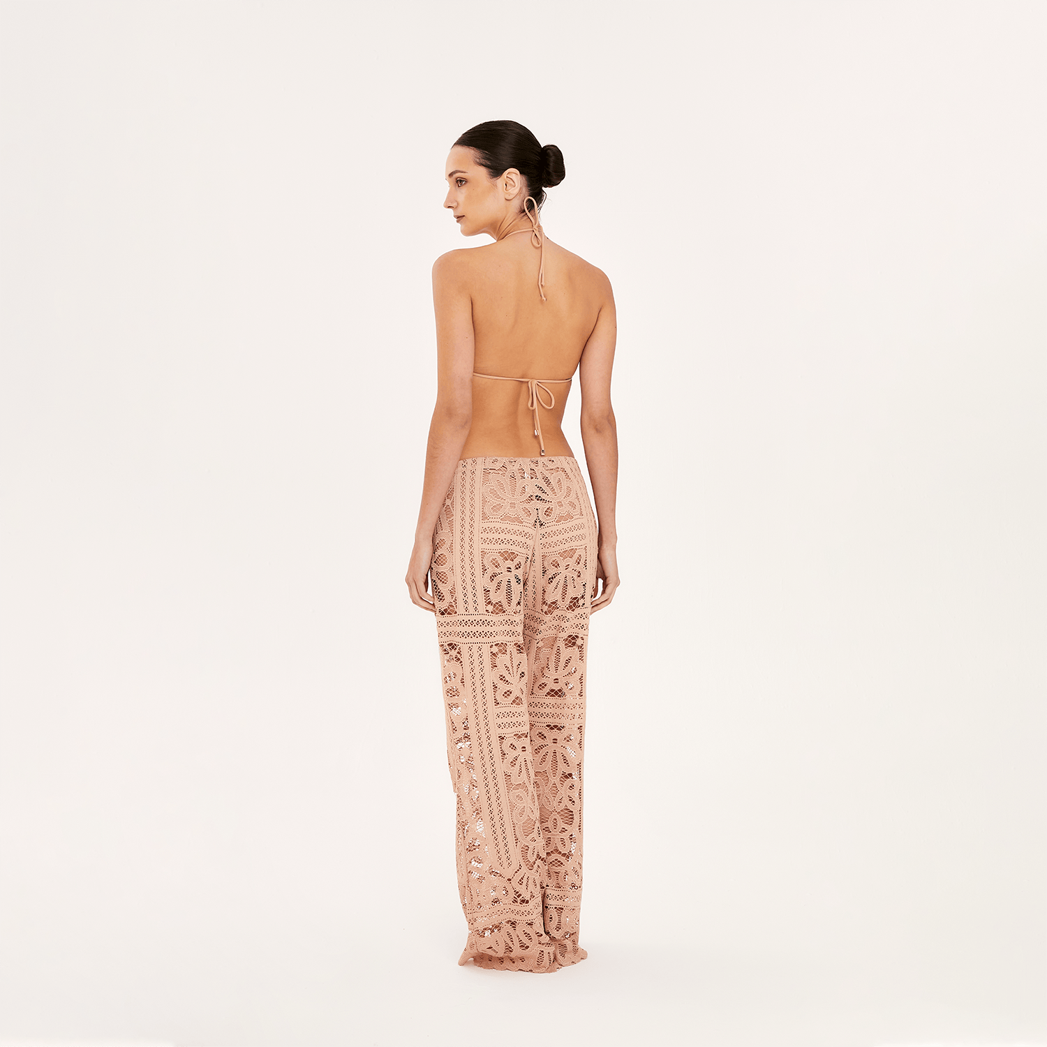 Pants features adjustable waistband. Crafted from italian delicate embroidered lace exclusive to Aguaclara, made in Peru.
